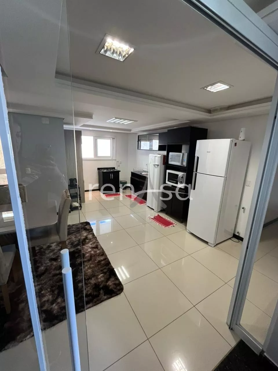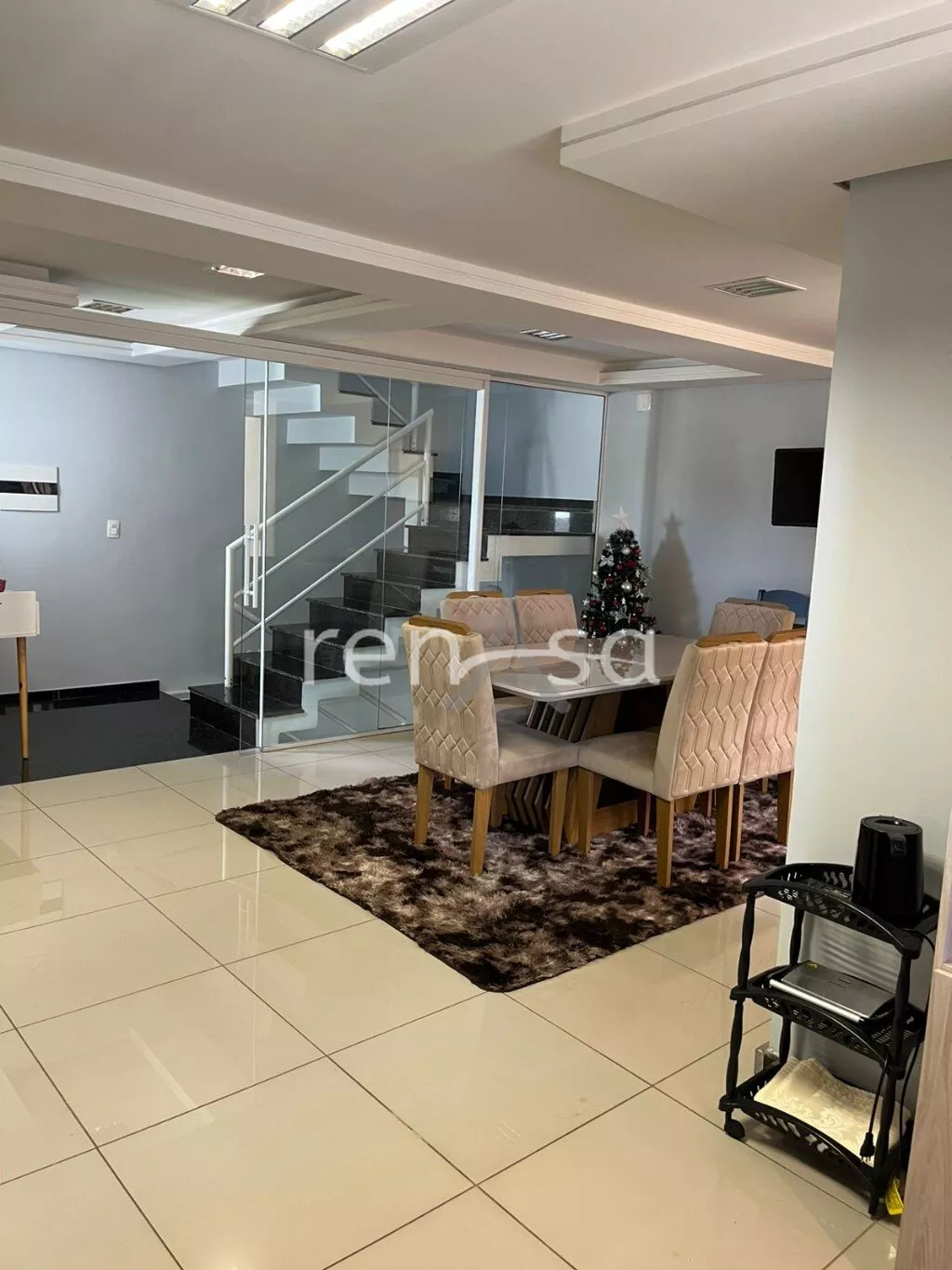 sala de estar e jantar integradas;