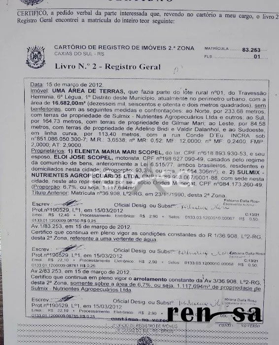 Renasa vende ótimo terreno de 16.682m² no bairro Bela Vista, em Caxias do Sul.