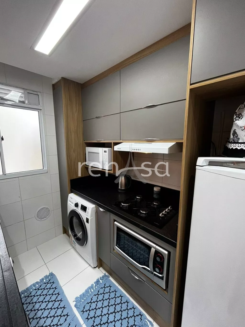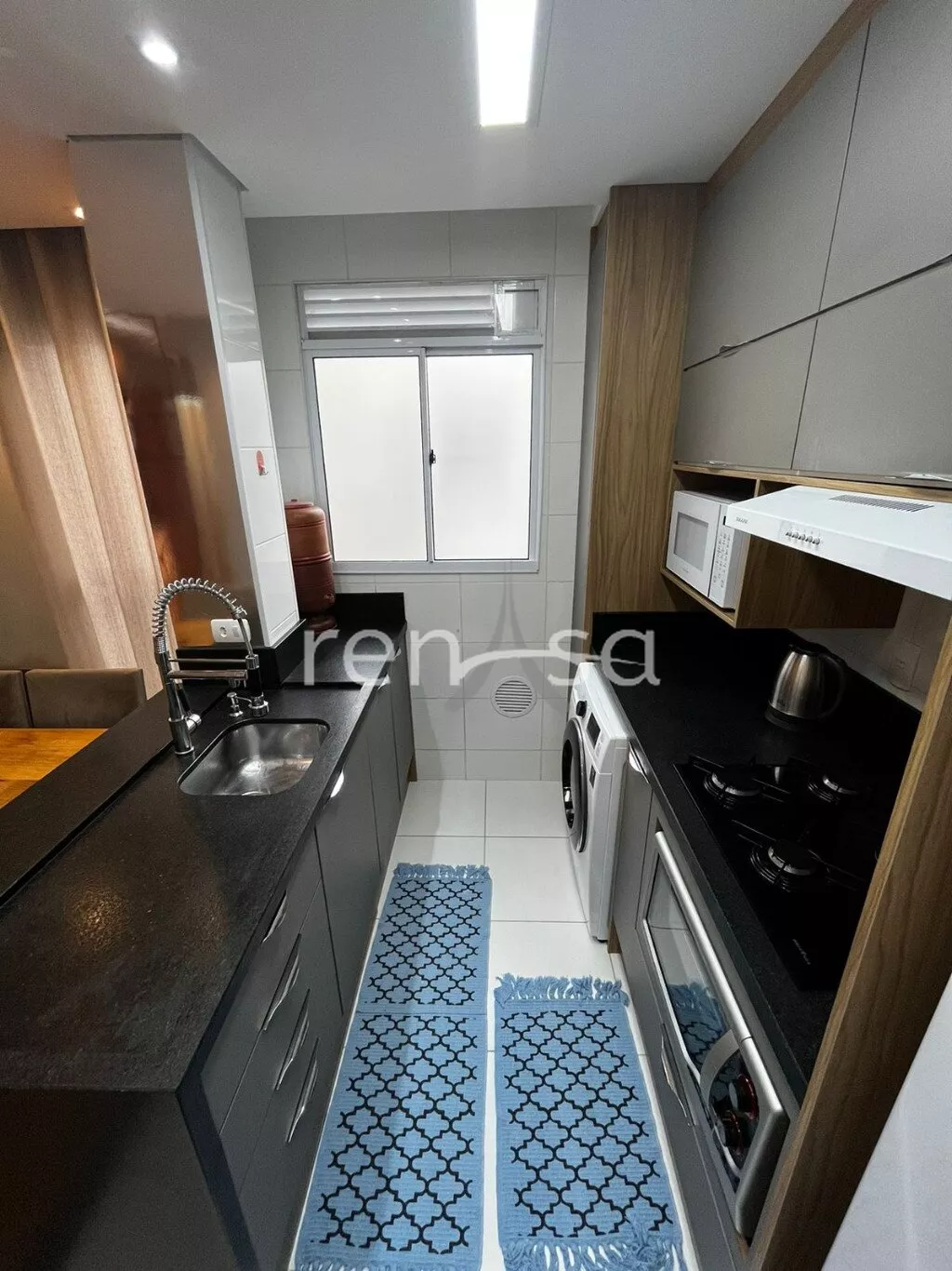 Com água quente, gás central e gás encanado.