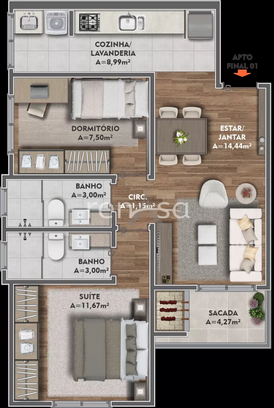 O Apartamento conta com: