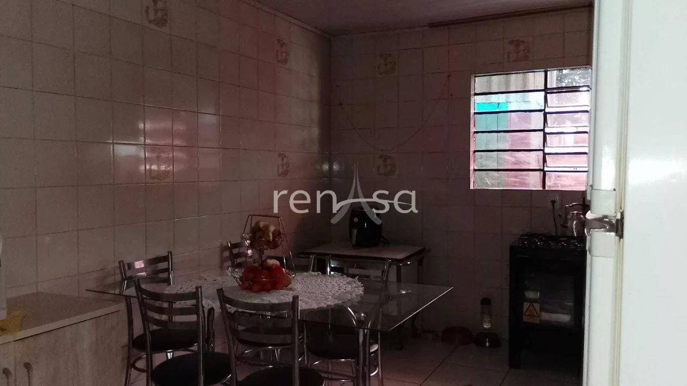 Cozinha e sala de jantar conjugados.