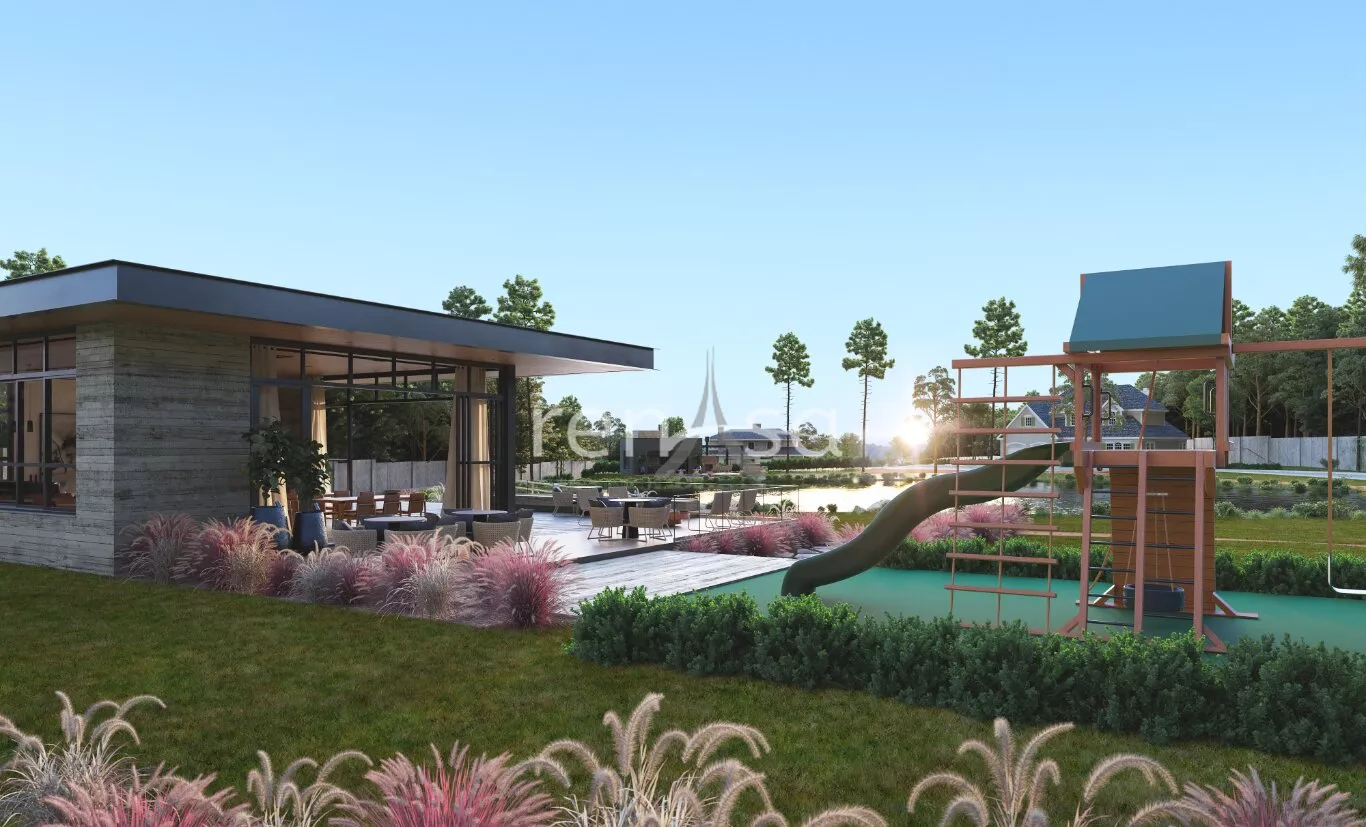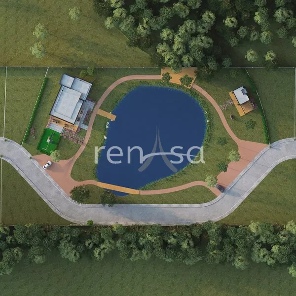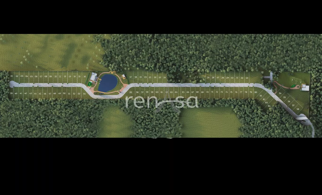 Área do condomínio com 7.2 hec, área de lazer 1.4 hec, área de preservação 5.8 hec, apenas 84 lotes.
