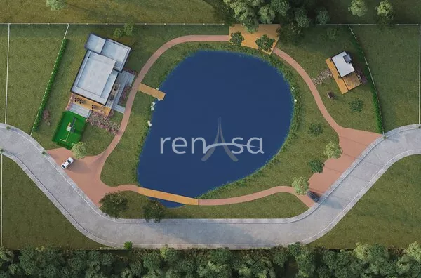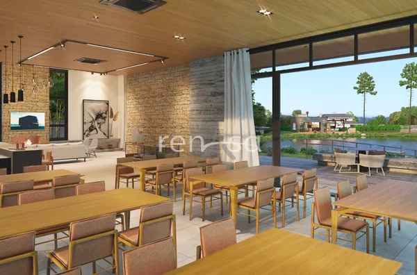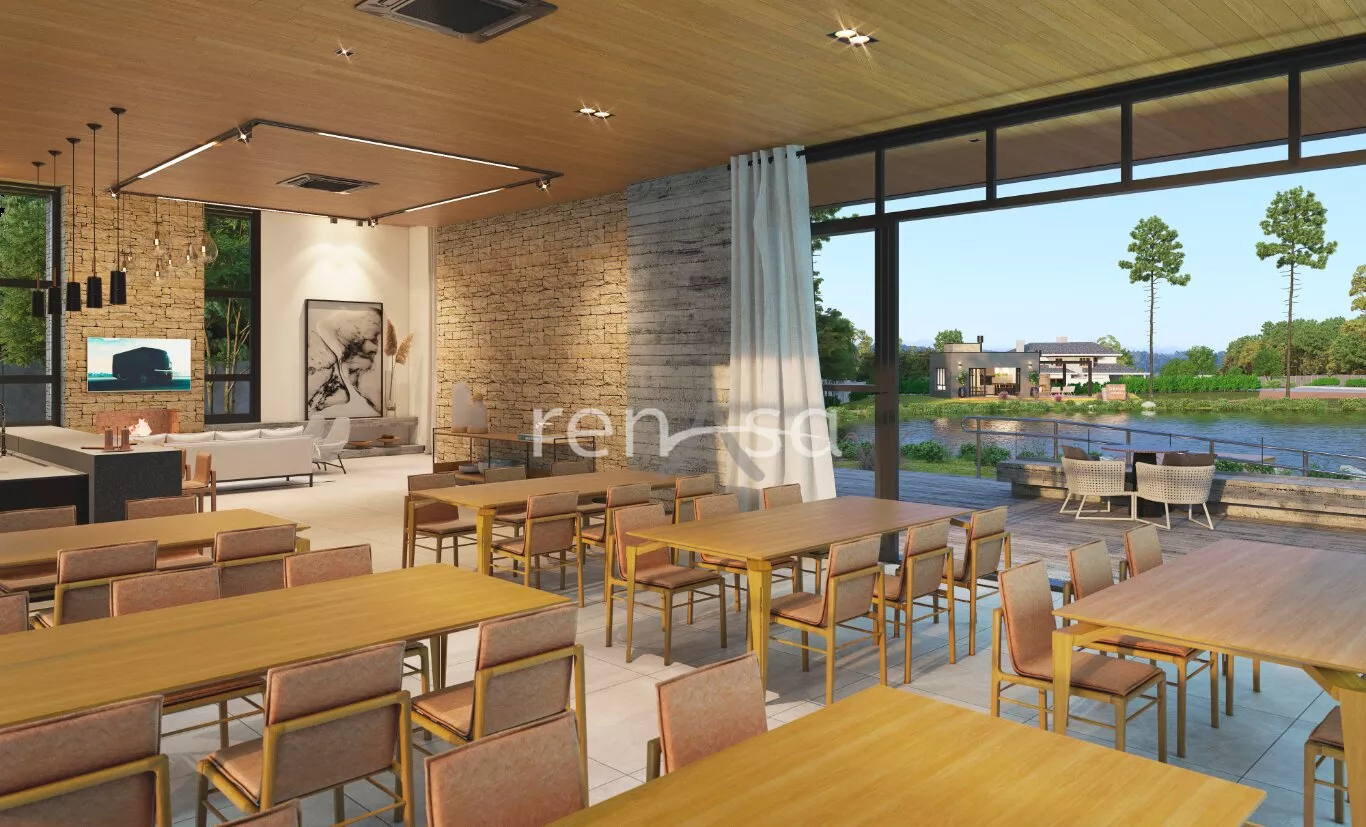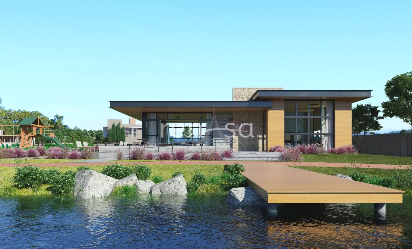 Salão de festas em frente ao lago