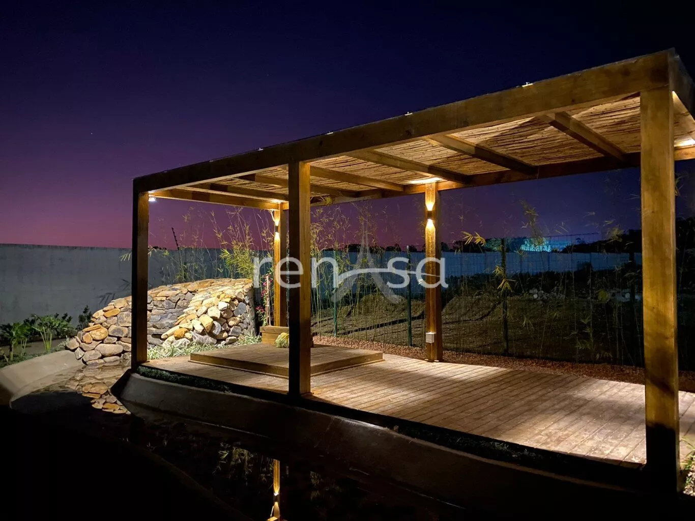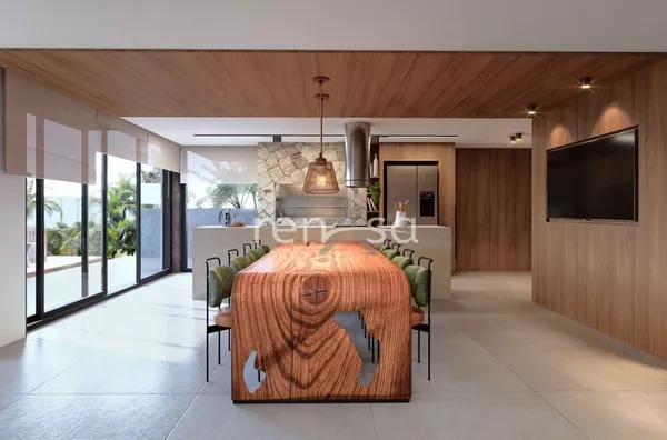 No nível superior, a residência conta com três suítes, voltadas para leste e oeste. A suíte master é ampla e sofisticada, com um generoso closet e um banheiro requintado, proporcionando o conforto que você merece após um longo dia. As outras duas suítes são igualmente encantadoras, cada uma oferecendo um ambiente acolhedor e privativo, ideal para hóspedes ou membros da família. Para completar, o gabinete com varanda oferece o espaço perfeito para trabalho ou leitura, permitindo que você desfrute da encantadora vista do pôr-do-sol, enquanto se conecta com a natureza. Os acabamentos externos são um verdadeiro destaque, com o uso de pedra natural, ripado de madeira e esquadrias de PVC pretas com vidros duplos. Esses materiais conferem um toque contemporâneo e sofisticado à fachada, além de proporcionarem conforto térmico e acústico, garantindo um ambiente agradável e silencioso.