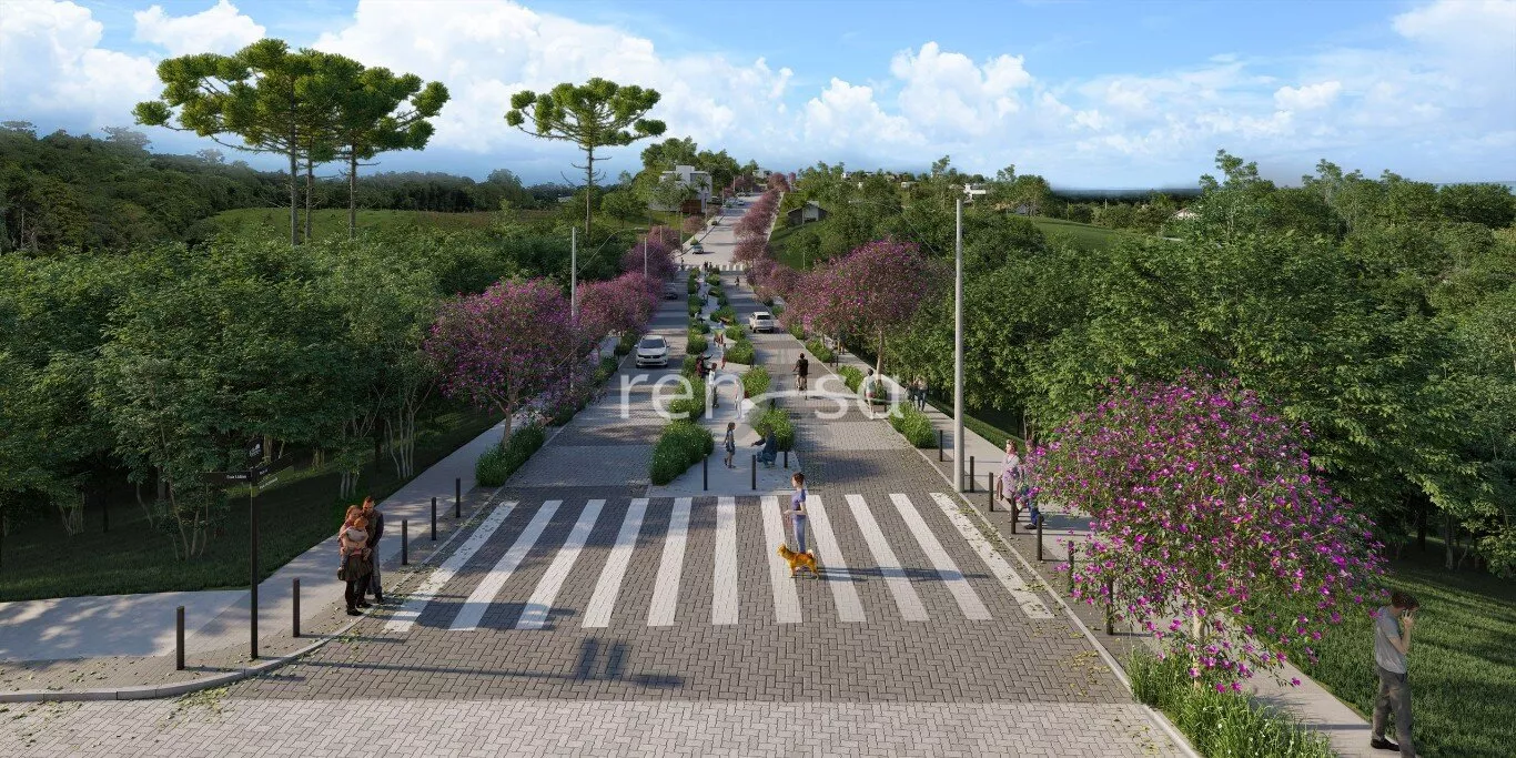Rua Acalmada que delimita de forma elegante e segura, os lotes comerciais e residenciais.