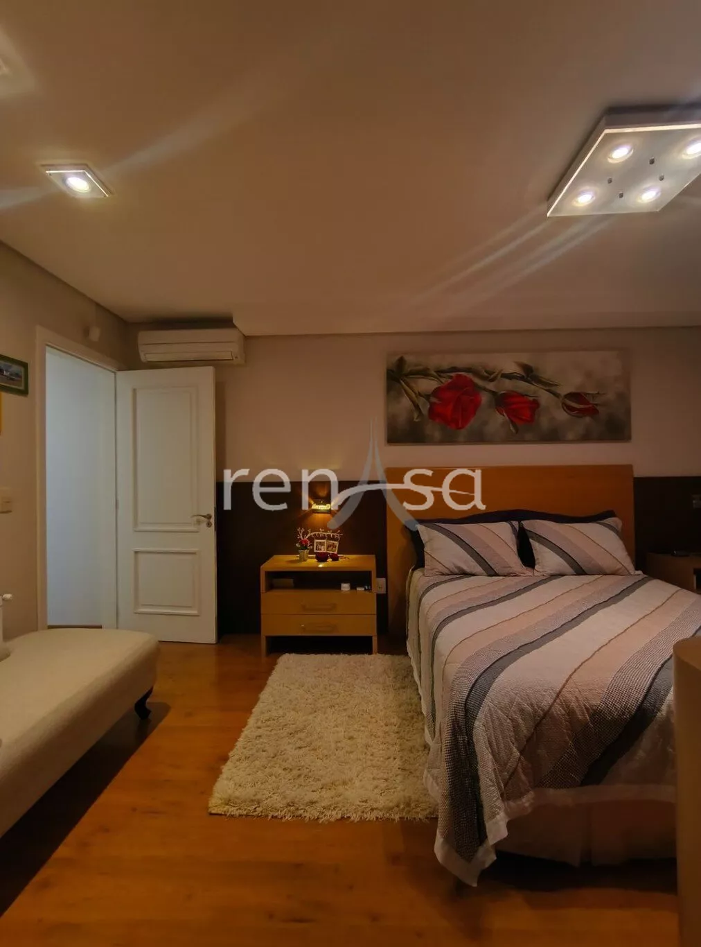 Um Suíte master com closet personalizado e sacada privativa;