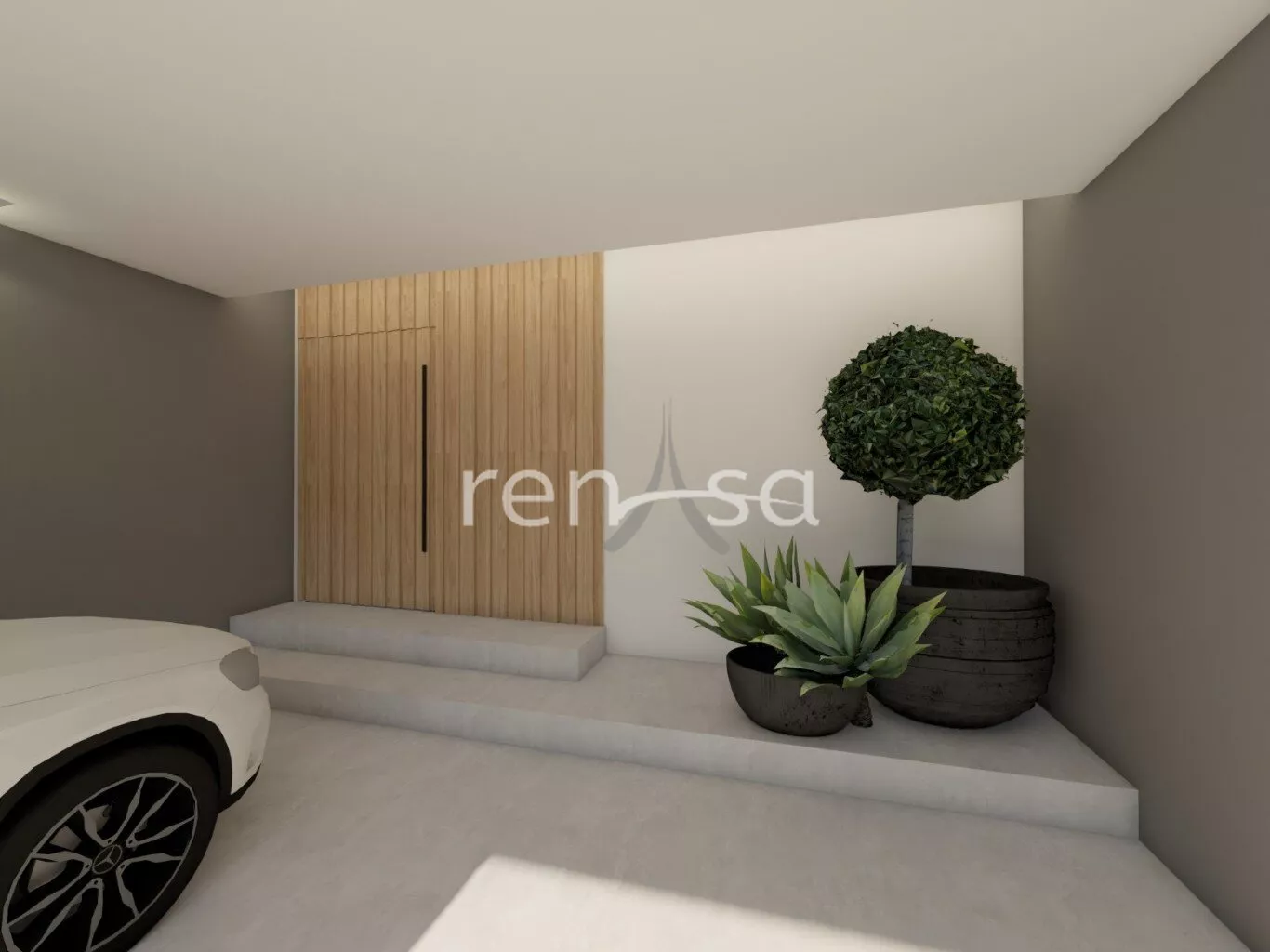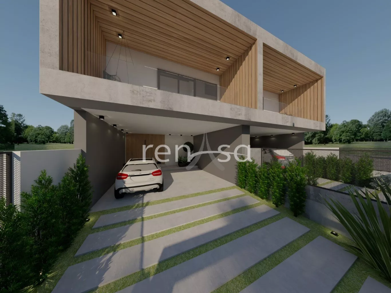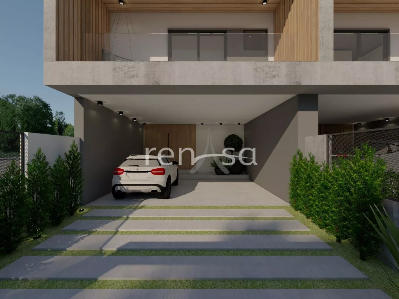 • Porta de entrada em madeira ripada, trazendo sofisticação logo ao primeiro olhar