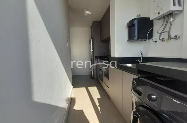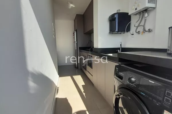 O living conecta sala de estar com sacada, sala de jantar e cozinha em um espaço amplo, iluminado e contemporâneo. A área de serviço, com acesso direto à sacada, traz praticidade ao dia a dia. O dormitório é acolhedor e o banho social atende com eficiência às rotinas da casa.